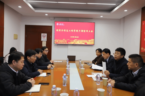 2025年12月24日下午,上海大学通信与信息工程学院干部宣布大会在翔英大楼514召开。上海大学党委副书记、副校长胡大伟,组织人事部组织处副处长张云中,学院党政领导班子、各系所领导代表以及全体学研工教师参会。会议由张云中同志主持。