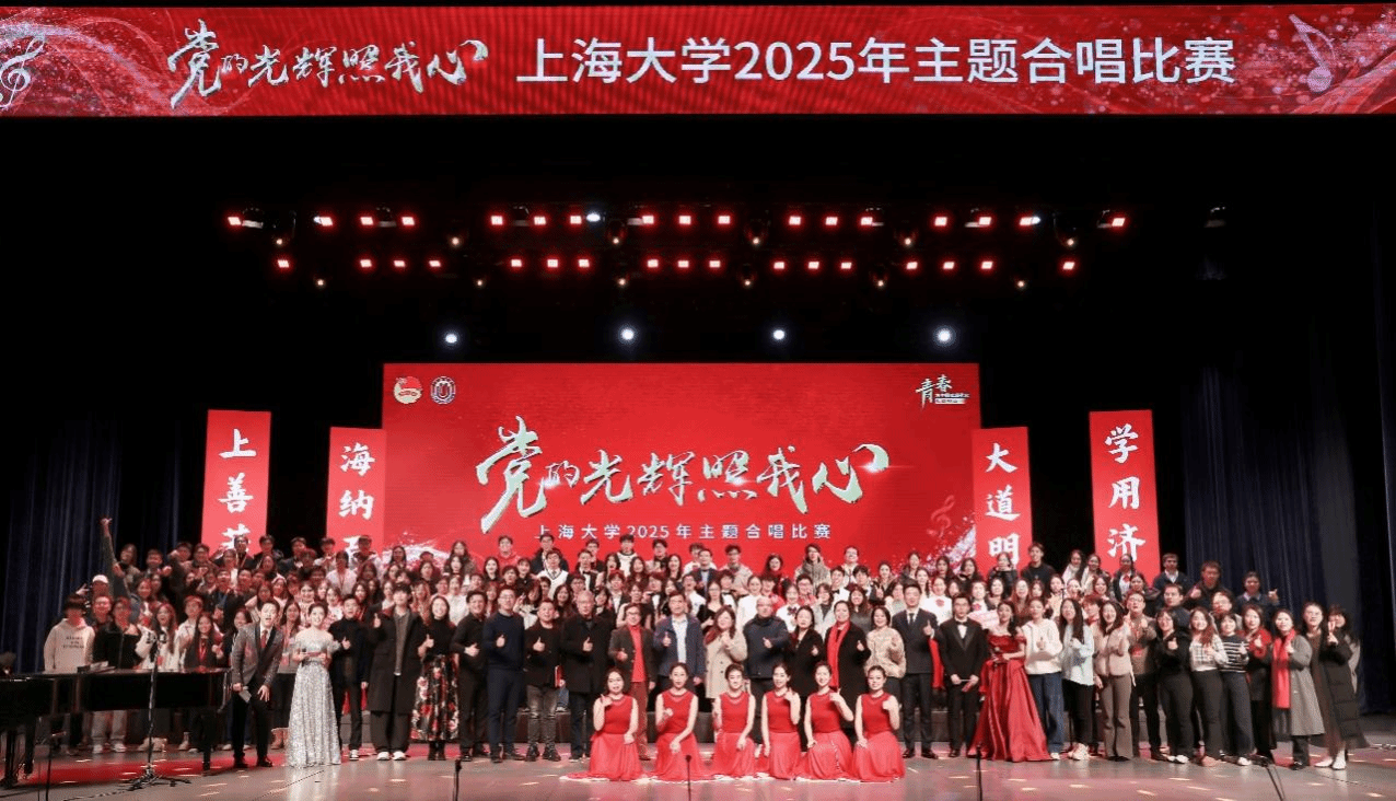 12月28日,“党的光辉照我心”2025年上海大学“一二・九”主题合唱比赛在伟长楼盛大举行,由50名通信师生组成的“通信之声”合唱团,以《同一首歌》为心声,用通信人的热忱与坚守,唱响对祖国的深情告白。歌声穿越时空,致敬“一二・九”的热血过往;旋律激荡人心,展望新时代的奋进征程!从最初的生疏试探到后来的默契相融,从声部配合的反复校准到情感表达的层层递进,通信师生全情投入,让排练厅里的每一次练习、每一次纠错、每一次合唱,都成为青春与爱国的最美共鸣。