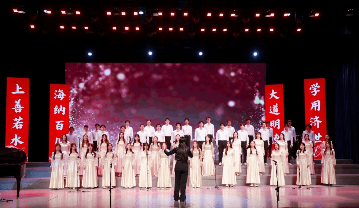 合唱团成员身着统一服装,神采飞扬、意气风发。熟悉的旋律一响起,他们的歌声便如奔涌江河,气势如虹,以歌为媒倾诉对家国、集体的深情,用赤诚传递“一二・九” 精神的薪火。台下通信学院的同学们也全程鼎力助阵,掌声与喝彩声此起彼伏,为台上的伙伴们注入满满能量。