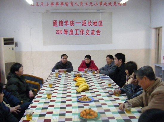 2010年12月29日下午2点在延长社区M1楼会议室召开通信学院延长社区2010年度工作交流会。通信学院党委副书记吴蔚、延长社区管理部主任尹伟时、相关年级辅导员、东部小区区长、广中路小区区长以及社区管理员参加了会议。