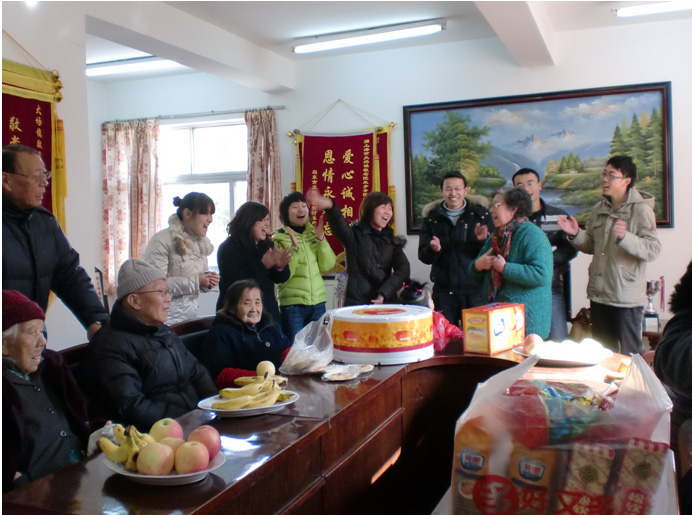 2011年1月13日上午,上海大学09级通信党支部的学生党员代表以及慧华幼儿园的老师及一些孩子们一起来到了大场镇敬老院看望老人们,整个活动期间其乐融融,温馨快乐。