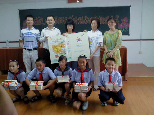 9月9号上午,通信学院"慈善蓝纽带爱心志愿者服务社团"和社会各界人士在山海农民工子弟学校举行了 "图书角计划"启动仪式暨捐赠仪式。参加仪式的有山海学校领导、新闻晚报副主编、团市委学校部领导、爱心企业代表、校团委副书记秦凯丰老师和通信学院团委书记薛程老师以及通信学院慈善蓝纽带爱心服务社志愿者们。