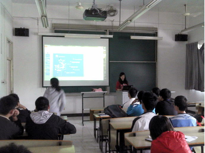 10月14日上午十点,在新校区C101,通信科创部如约进行"电子商务白领计划第二季"活动。主讲人刘幸琳首先向同学们展示了两个不同形式的PPT动画,其一是通过多层剪贴画的平动辅之以PPT动画效果表现的中华腾飞之路,其二是简单线条勾勒出的素描式环保动画,可谓各有千秋,简约而不简单。当然,仅仅欣赏是远远不足的,刘幸琳学长通过一个个细节向同学们讲解了动画的制作步骤,层次鲜明。她告诉大家,做出这些动画是不难的,只要熟练运用PPT动画效果就可以了,关键是要有一个清晰的思路。通过学习,还了解到PPT高级日程表处理多层动画强大的时间微调功能。