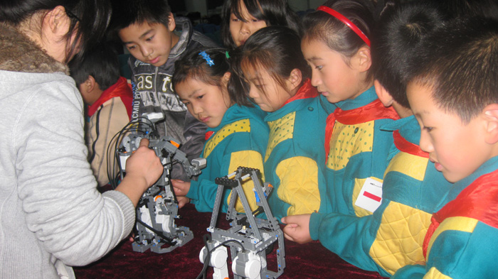 2011年12月8日,上海大学慈善蓝纽带爱心志愿者服务社的志愿者们,带领山海农民工子弟学校30多名小学生,参观了上海大学在社区学院举办的机器人展示。
