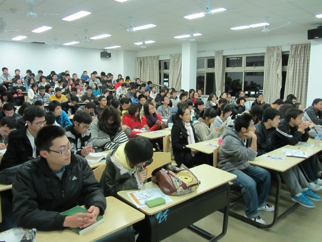 第一场讲座是刚刚获得全国大学生电子竞赛一等奖的08级徐朝星同学,他从自己参加竞赛的心路历程讲起,分享了自己参赛的这个详细过程,给学生树立了大学应该怎样度过的优秀榜样,期间的互动更让社区学院的学会对通信专业产生了浓厚兴趣。第二场和第三场均由通信学院学生会副主席,校学生会副主席,青鸟剧社社长09级陈黄超主讲,他主讲的题目是《入学113天》。作为上海大学小有名气的通信学子,他以自身的亲身经历及工作学习中的真切体会,给大一的新生们上了深刻的一课。他把他在大学845天里对大学的理解定义为:大学=学习+工作+玩,并深入分析了三者的关系:目标决定排序,学习绝不松气!最后,他把自己总结的20句肺腑之言送给大一的新生们。互动环节中,其中针对大类招生他认为"不要去问学长学姐哪个专业好,大类招生就是为了让你自己去寻找这个答案,否则你和往届的学生没有区别"。他的分享无疑为入学113天的新生们解答了很多疑惑,并给大家在接下来1300多天的大学生活带来了极大的鼓励。