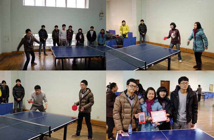 这次比赛真正是高手对决,场面异常精彩;淘汰赛阶段,通信学院参赛队对阵生命科学学院参赛队,比赛刚开始时,男单遭遇失利,通信学院代表队奋起反击,通过扎实的防守和有效进攻逐步取得优势。生命科学学院代表队也毫不示弱,稳扎稳打,顽强拼搏,经过男单、男双、女单、女双四轮比赛后将总比分定格在2:2;到混双比赛时,比赛双方都使出看家本领,经过激烈争夺,最终通信学院代表队以总成绩3:2晋级前三强争夺循环赛。在循环赛阶段,通信学院代表队分别与社会科学学院代表队和材料学院代表队进行比赛。由于我方队员不熟悉对方发球套路,在循环赛阶段初期遭受重创。经过几轮比赛,我方队员逐渐适应了对方的发接球方式,开始奋力追赶,最终惜败,斩获乒乓球比赛决赛季军的荣誉。