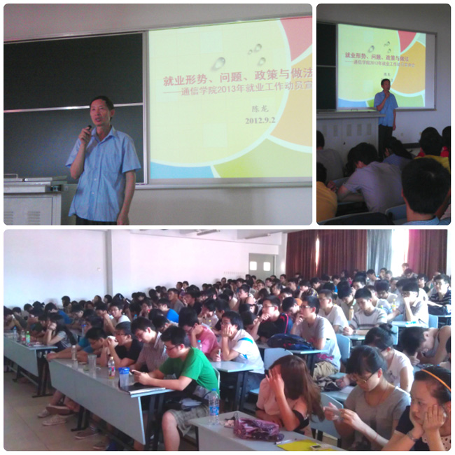 9月2日下午2点整,通信学院09级全体学生迎来了迈入大四的第一次首日教育。因为09级马上迎来毕业、就业、考研的不同分叉路口,为了让同学们能够更清楚地了解流程,辅导员特地请来了我们学院负责毕业就业这块的权威—陈龙老师。经过陈龙老师的细心讲解,所有学生对于未来的人生规划又更清晰了一点。