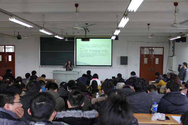党的十八大召开后,全国立即掀起了学习十八大精神的热潮。通信学院党员也投入到这股学习热潮中。12月23日上午9点,在延长校区一教301教室,学院邀请上海大学教务处副处长、校十八大精神宣讲团成员、顾晓英老师为学院全体学生党员带来精彩的十八大解读。