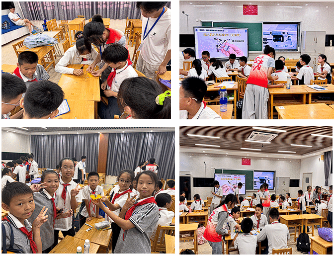 知是行之始,行是知之成。为进一步提高同学们的动手实践能力,宣讲团成员设置了实践动手环节,带领小朋友们亲手制作“迷你无人机科学实验1号”,同学们瞬间化身小小航空工程师。