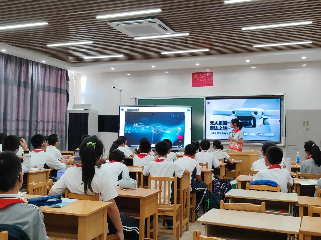 2025年10月10日,上海大学宏嘉宣讲团走进上海师范大学附属经纬实验学校,为同学们带来了一场名为“无人机的魔法之旅”的宣讲活动。随着一阵阵的嗡鸣声在的课堂里响起,普通的课堂瞬间化身为一个临时的“无人机起降场”!在这里,知识不再是书本上的符号,它化身为旋翼下的气流,托举起每一个少年的科学梦想。