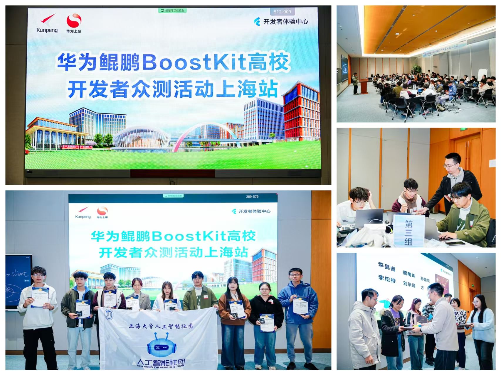2025年11月29日,上海大学人工智能社团组织本校学生赴华为上海练秋湖研发中心,参与“华为鲲鹏BoostKit高校开发者众测活动上海站”。本次活动由华为技术有限公司主办,聚焦国产基础软件性能优化与开源技术实践,吸引了来自全市多所高校的开发者参与。