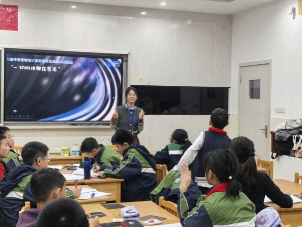 课程的尾声迎来思维火花迸发的创想环节。宣讲团成员沈萌引导同学们将科学原理与生活洞察相结合,鼓励同学们大胆想象:“如果你拥有一双能看见所有光的‘超能力眼睛’,你想创造出一件怎样的‘光影法宝’去解决生活中的难题?”同学们脑洞大开,奇思妙想迸发:“为农民发明植物健康手电筒,一照就知道庄稼缺不缺水、缺什么营养”、“做守护环境的水质检测大师,让河流湖泊的有害物质无处遁形”、“为视障朋友设计智能导航杖,用不可见光精准识别障碍物类型并语音提示”……随着一个个充满想象力的方案被提出,教室内认同声与讨论声不绝于耳,创新的种子在年轻的心里生根发芽。
