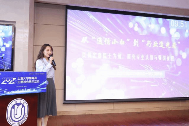提升职业能力,打造新质思政,培育强国英才。11月25日下午,“2025年上海大学辅导员主题班会展示活动”在宝山校区乐乎新楼2号楼学海厅举行。12位入围决赛的辅导员同台竞技,他们立足学生成长核心需求,以扎实的理论功底搭建班会框架,用专业的育人方法设计互动环节,将日常思想政治教育转化为生动鲜活的课堂实践,切实实现思想教育与价值引领的深度融合,充分彰显了上海大学辅导员队伍的过硬专业素养与育人担当。