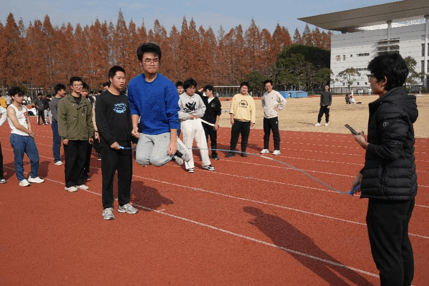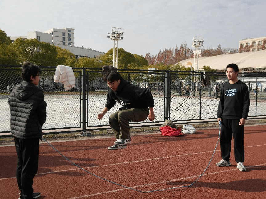 12人参与的“大绳不停·跳跃接力赛”,摇绳者稳控节奏,参赛者依次跃入完成5次跳跃后接力,无缝衔接的配合让绳圈持续翻飞,尽显团队的协调与信任。