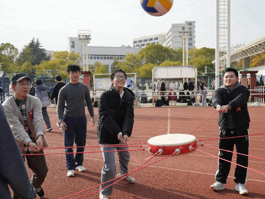 在一“鼓”作气项目里,11名队员合力操控鼓面,在90秒内紧盯小球精准颠球。鼓不落地、人不越圈的规则,要求每个人都精准把控力度,每一次颠球都是全员齐心协力的成果。