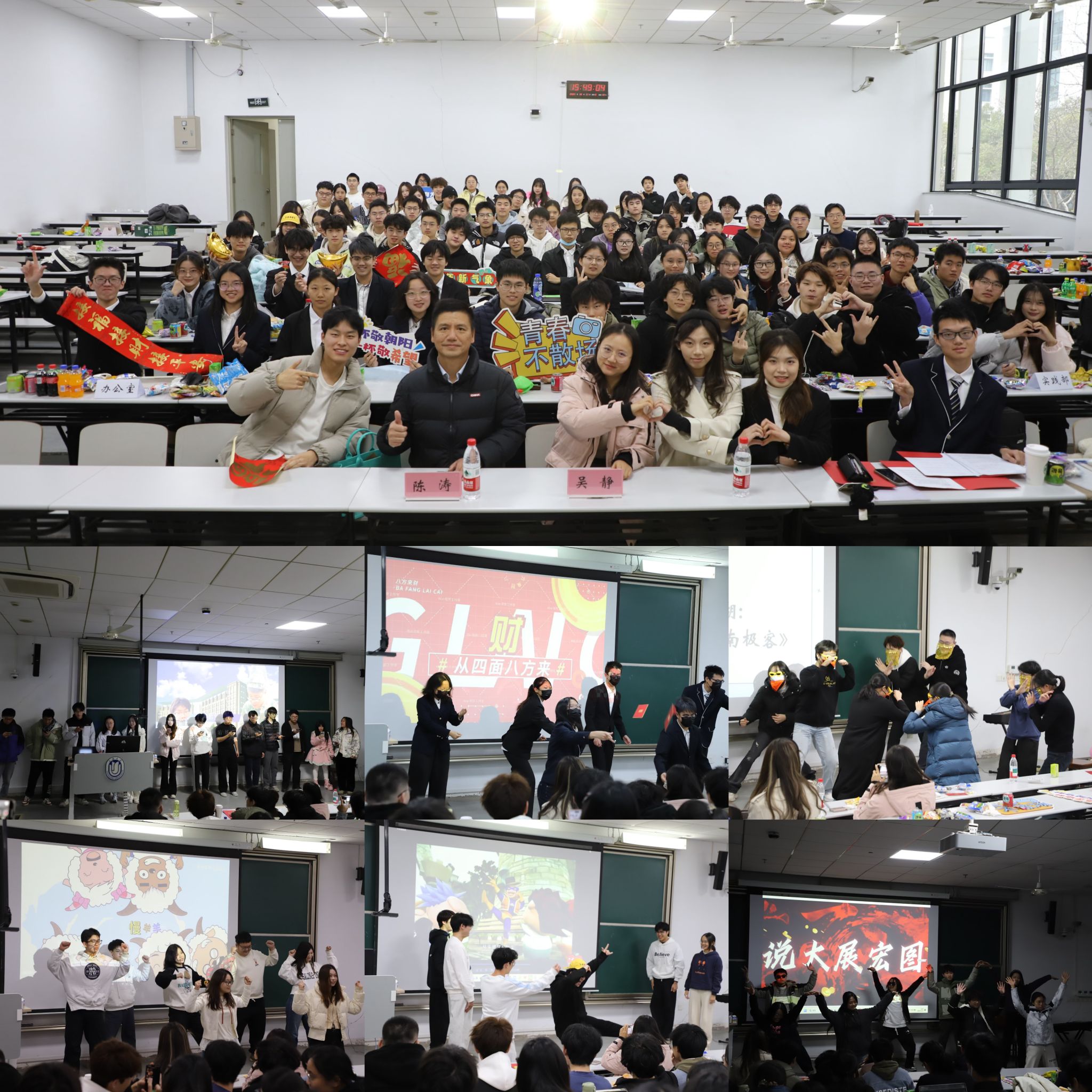 年度总结环节后,大会进入了轻松活泼的风采展示与游戏互动部分。各部门带来了精彩纷呈、创意十足的节目:科创部的《留下来给我刷嘉年华》歌舞串烧活力四射,表演形式丰富多彩,再现“直播间”氛围。融媒体部通过《大展宏图》创意表演,展现了部门的独特魅力。办公室的《年年有鱼》表演活力四射,配乐充满节奏感,服装独特新颖,搭配亮眼的道具,将美好的祝福寄托于精心设计的舞蹈动作中,令人影响深刻、回味无穷。实践部的《天竺湖:青蛙王子舞战南极客》舞蹈串烧幽默诙谐,演绎的创新故事为古典音乐赋予新的活力。文体部以《猪猪侠的倒数如厕计划》歌舞秀点燃全场,大胆而生动的表演让人赞不绝口。组织部《猛男靓女幼儿园》从米奇妙妙屋到青青草原,回忆了我们的童年。