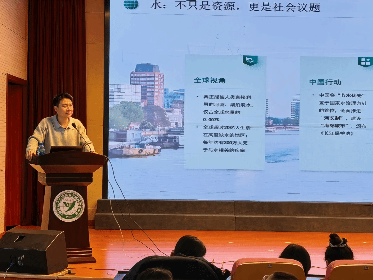 经过趣味课堂的热身,寒假实践营进入核心科学探索环节。来自上海大学环境与化学工程学院的硕士研究生许斌、叶佳辰联袂登台,带来了一场主题为“水与未来”的深度讲座,将营员们的视野从社会调研方法,进一步引向具体的科学议题。