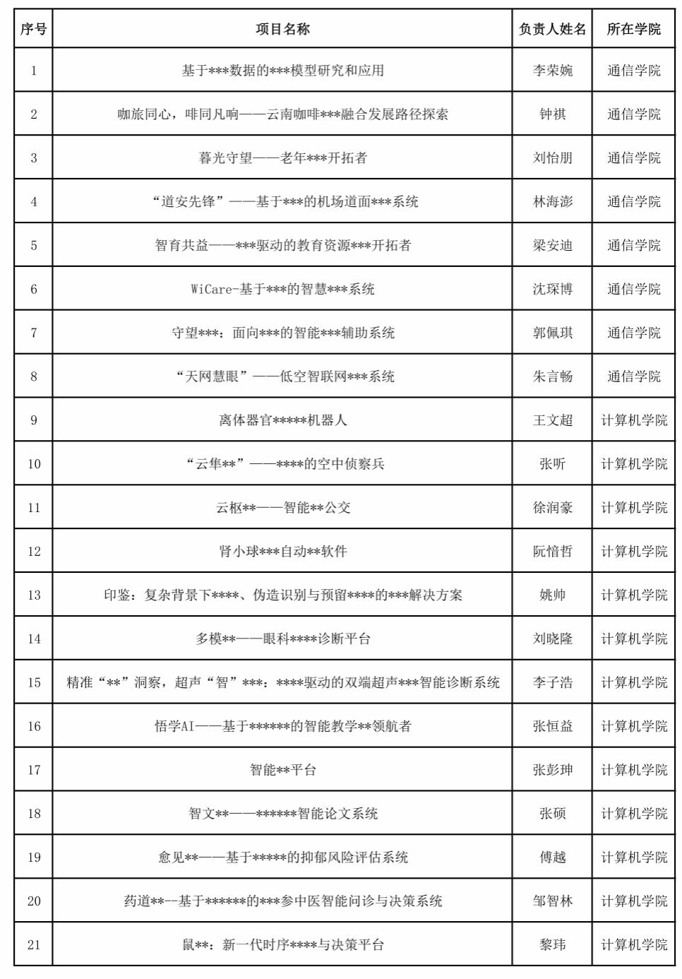 经评审,最终通信学院8个项目、计算机学院13个项目脱颖而出,将推荐至校赛复赛。现将推荐情况公示如下: