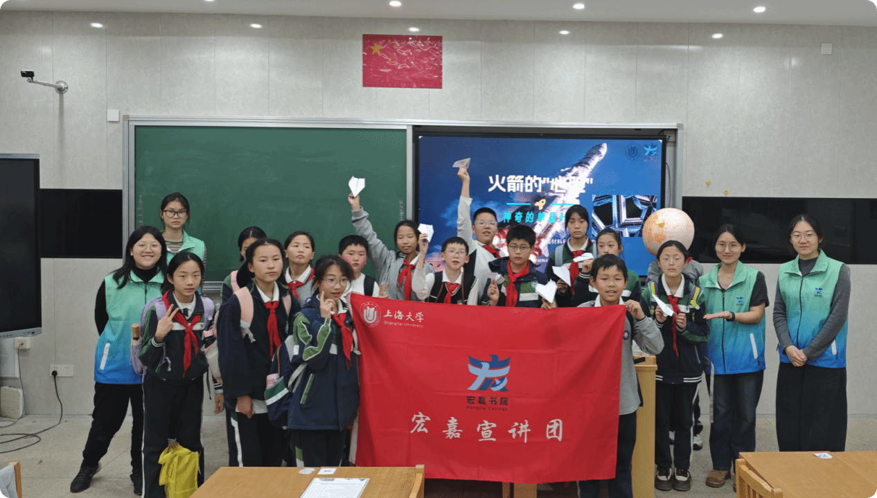 小小一片单晶叶片,要承受住岩浆般的温度;一张普通的纸飞机,也能划出空气动力学的优美弧线。从牛顿定律到钱学森的童年故事,再到亲手折出的第一架“飞越讲台”的纸飞机——科学的种子不必等长大才发芽,它就在此刻好奇的眼睛里、灵巧的指尖上。愿同学们永远保持这份“为什么”的热情,今天飞过教室的纸飞机,明天或许就能载着梦想,掠过真正的蓝天。未来,上海大学宏嘉宣讲团将继续携手上海师范大学附属宝山经纬实验教育集团共同探索科创实践育人模式,助力青少年茁壮成长!