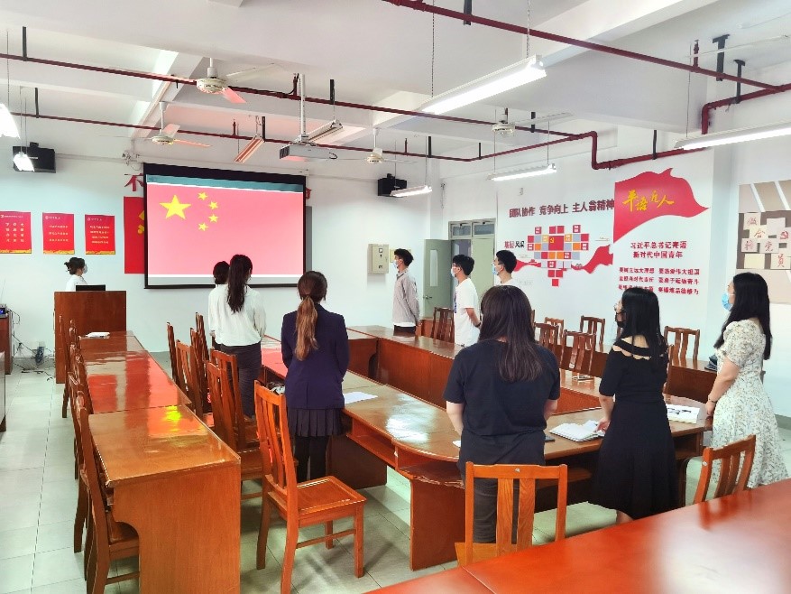 伴随着国歌声起,会议正式开始。首先,由党委副书记、副院长陈涛老师进行致辞。陈涛老师首先肯定了第二届研究生党建中心的工作成绩,尤其是上半年疫情期间,党建中心带领学院研究生各党支部和团总支、研究生会携手抗疫,为学校疫情防控工作展现出通信学子的责任和担当。同时,陈老师对全体党建中心成员提出三点要求:一是疫情防控不松懈,严格遵守疫情防控相关规定,起到先锋带头作用;二是加强与党支部、班团的联系,严格党员发展材料,严把“党员发展关”;三是强化党团研的沟通协作,用心做好学生工作,同时注重自身学业的发展。