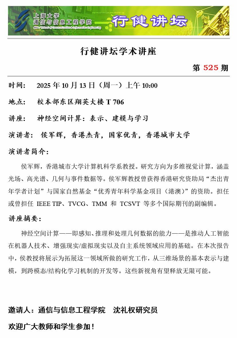 上一条:行健讲坛 №526 -新型事件相机系统设计及异步信号智能处理 下一条:行健讲坛 №524 -光纤成像传输技术的最新进展