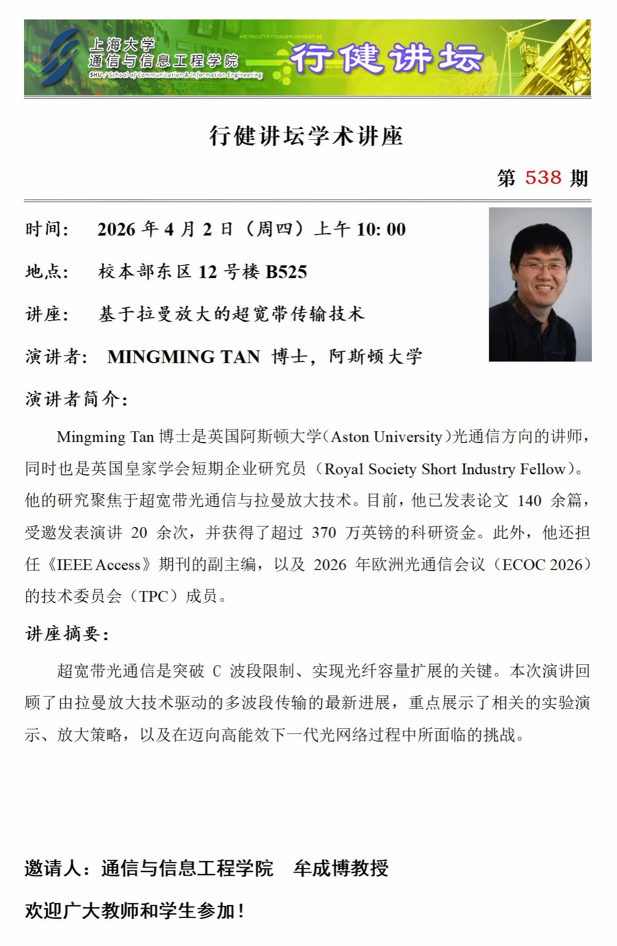 上一条:行健讲坛 №539 -低重复率光学频率梳:XUV精密光谱的新途径,高重复频率光学频梳在天文学中的应用 下一条:行健讲坛 №537 -高次模式压缩天线的研究